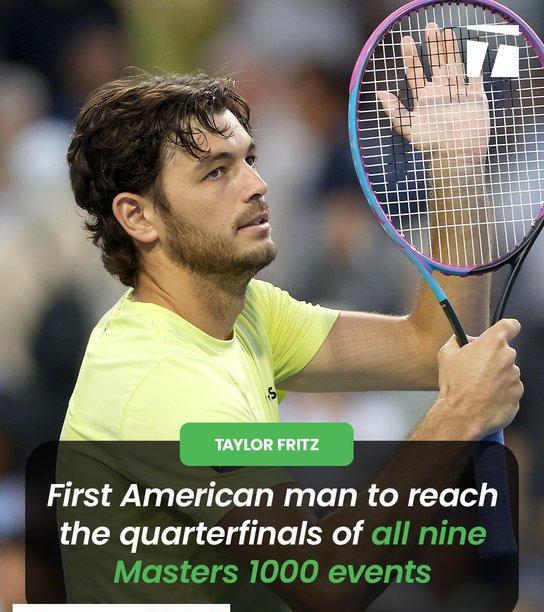 弗里茨在多伦多大师赛76(4),(5)67,76(5)战胜莱赫卡后, 解锁了9站大师赛全八强记录。 至此,弗里茨已经在他职业生涯的所有9项大师赛中进入了四分之一决赛或更好的成绩。加拿大此前是排名第四的美国人唯一缺席八强的赛事, 他曾在2022年和2023年两次在16强中被淘汰。 弗里茨成为第一个在所有9项大师赛中都至少进入四分之一决赛的美国人。 ▼泰勒·弗里茨1000大师赛的最好成绩: 冠军印第安维尔斯[2022] 加拿大八强进行中....... [2025] 迈阿密的四强 [2025] 马德里四强[2024] 罗马的八强[2024] 上海四强 [2024] 蒙特卡洛四强 [2023] 辛辛那提八强[2022年,2023年] 巴黎八强[2021] #网坛风云#