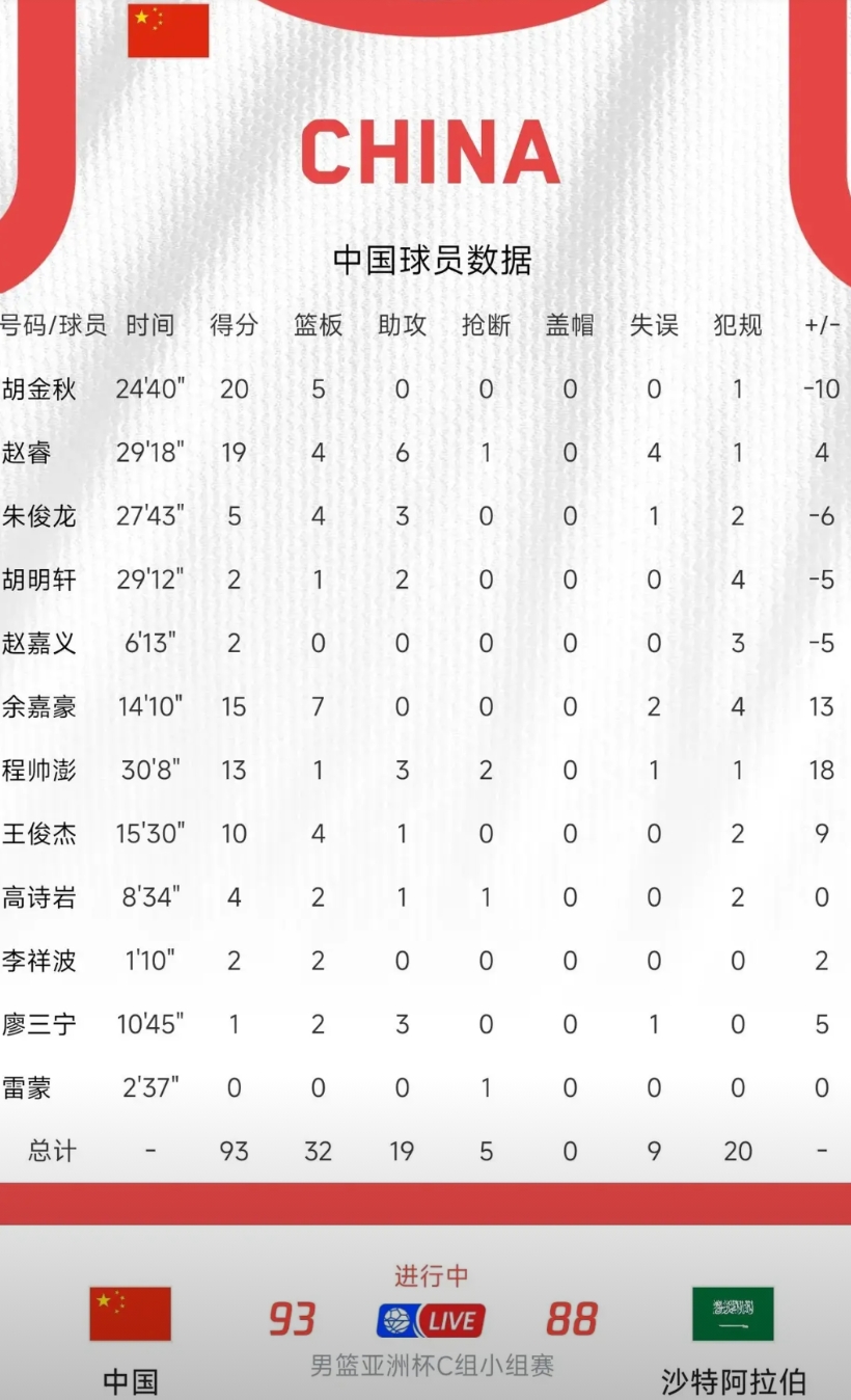 与比自己世界排名低35位的沙特打亚洲杯小组赛首战,当沙特起势疯狂追分时,关键时刻总是赵睿站出来,又突又投连拿分,一次又一次用得分浇灭了沙特的气势。