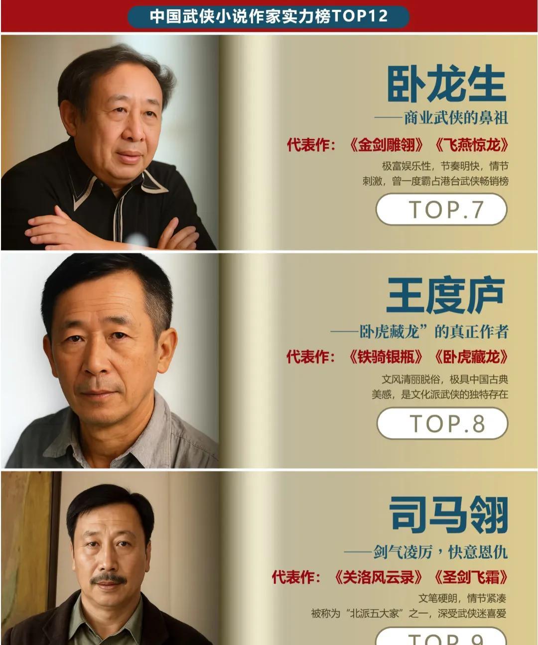 中国武侠小说作家实力榜TOP12