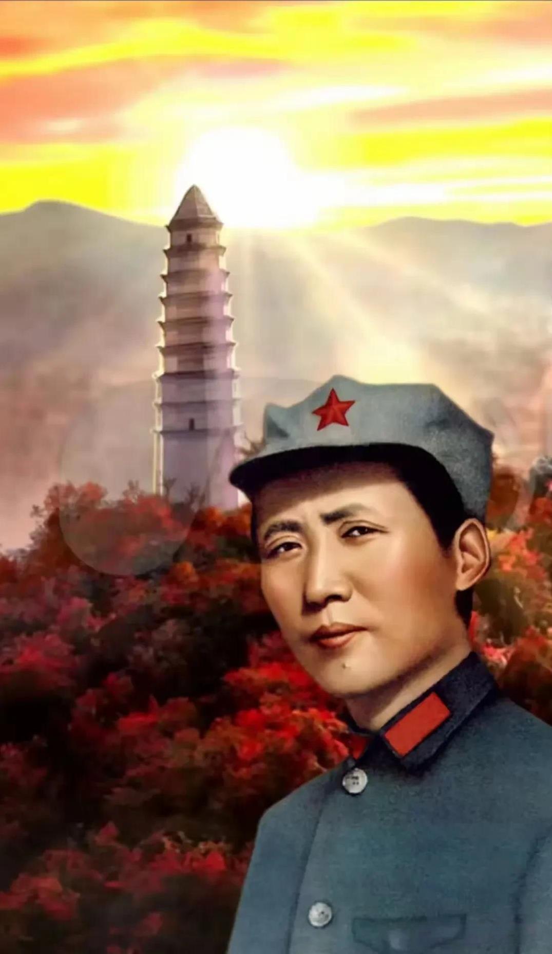 在陕北延安,毛主席身着军装,八角帽下是他坚毅的面容。延安的宝塔山巍峨耸立,似革命