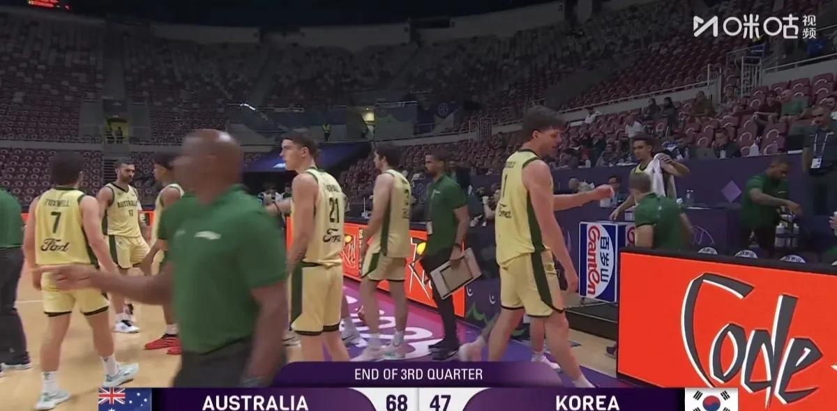袋鼠军团下起三分雨,太极虎成为落汤鸡! 今天,男篮亚洲杯小组赛A组迎来一场重磅大战,世界强队澳大利亚男篮迎战亚洲传统强队韩国男篮。 A组是名副其实的死亡之组。澳大利亚排名世界第7,这次男篮亚洲杯剑指三连冠。而韩国男篮向来韧劲十足。黎巴嫩和卡塔尔也都不是软柿子。 上半场比赛澳大利亚竟然用韩国队最擅长的三分球把韩国队打崩。16投10中,三分球命中率达到了惊人的62%。 下半场,澳大利亚队依然如法炮制,三分球依然神准,打的韩国队无法招架。 最终,袋鼠军团以97:61大胜太极虎,取得小组赛开门红! 不得不说,人高马大的澳大利亚真的有绝活,值得其他球队好好学习。