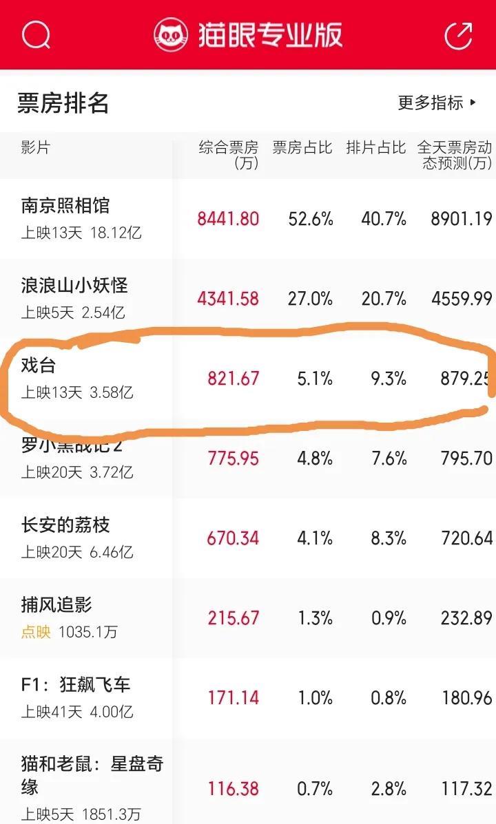 《戏台》票房预估又下降了,只有4.45亿! 不是陈佩斯不努力,不是演员演技不好,