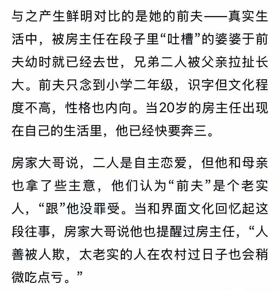 发现没,从鼓动女孩子不要嫁人不要“伺候公婆”,到开始鼓动中年女人甚至老年女人,走出家庭,放弃责任,追求“自由”。 一大批适婚阶段的女人,被心甘情愿搞成了大批大龄剩女。现在,目标又对着已经走进婚姻的女人了。鼓动她们放弃家庭,指责丈夫,在婚姻里各种编造谎言,鼓动大家“离开家庭”! 房主任跟那个自驾游的苏敏一样,都是搞男女对立,然后自己赚得盆满钵满的,搞不懂在吹捧什么。 脱口秀的门槛越来越低。有的调侃早就超越了玩笑诙谐的底线了。这就是乡村版傅首尔罢了,老年版傅首尔,沧桑版傅首尔罢了。 都是主打一个,埋汰丈夫,编造被害,鼓动离家,然后辉煌腾达。 早就知道有猫腻,无非拉出个典型,割大众韭菜,不知大家没有以前那么好骗了 女权公司造的一个人设。和傅首尔一样的人设。看她油嘴滑舌的样子,还遭夫家打压,暴力?我是不相信,她欺负别人还差不多。就觉得她这体格,不可能被90斤的人打吧 真真假假,假假真真。不过房主任所表现出来的性格,肯定不是段子了那样,任人拿捏的人。恶人先告状,伶牙俐齿心肠坏,坏人共振,喜欢这种低级趣味也不是啥好人 又打造出一个苏敏罢了,相信,你就中计了