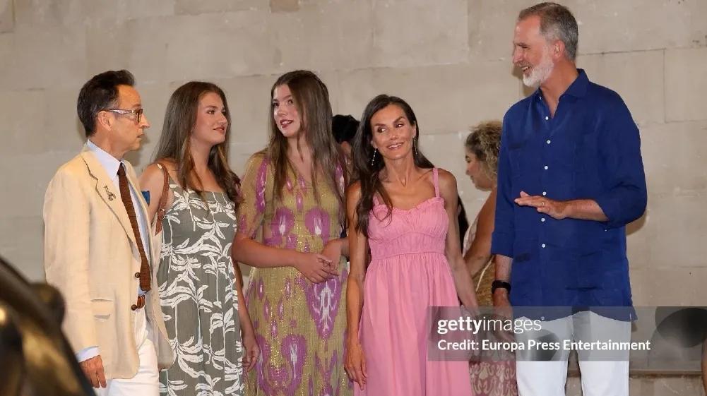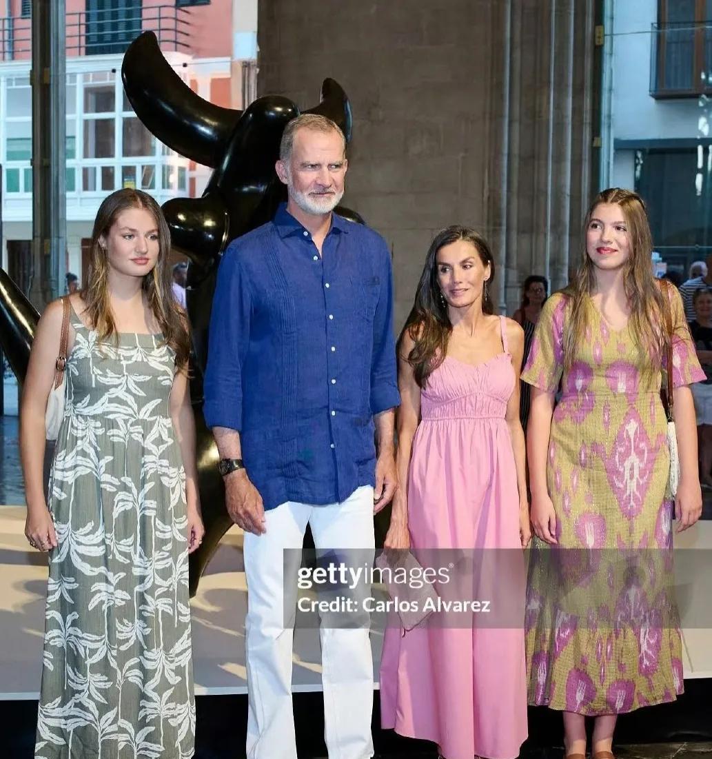 粉嫩的莱后和略显成熟穿搭的王室姐妹花 正在马洛卡度假的西班牙王室一家显得轻松自在