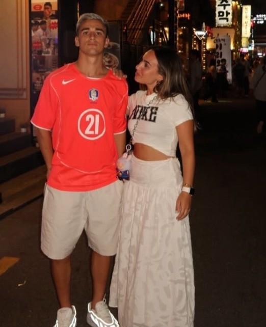 #巴萨#加维是懂礼貌的,带着妹妹在韩国逛街,特意穿上朴智星的球衣,情商在线啊!