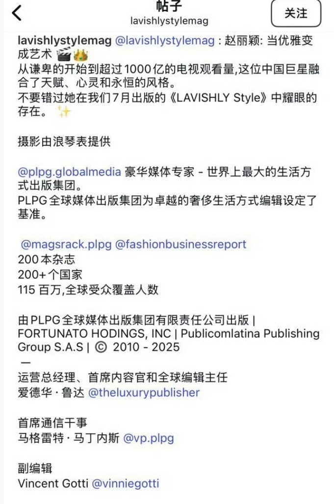 LavishlyStyle杂志选用了赵丽颖浪琴广告作为七月刊封面