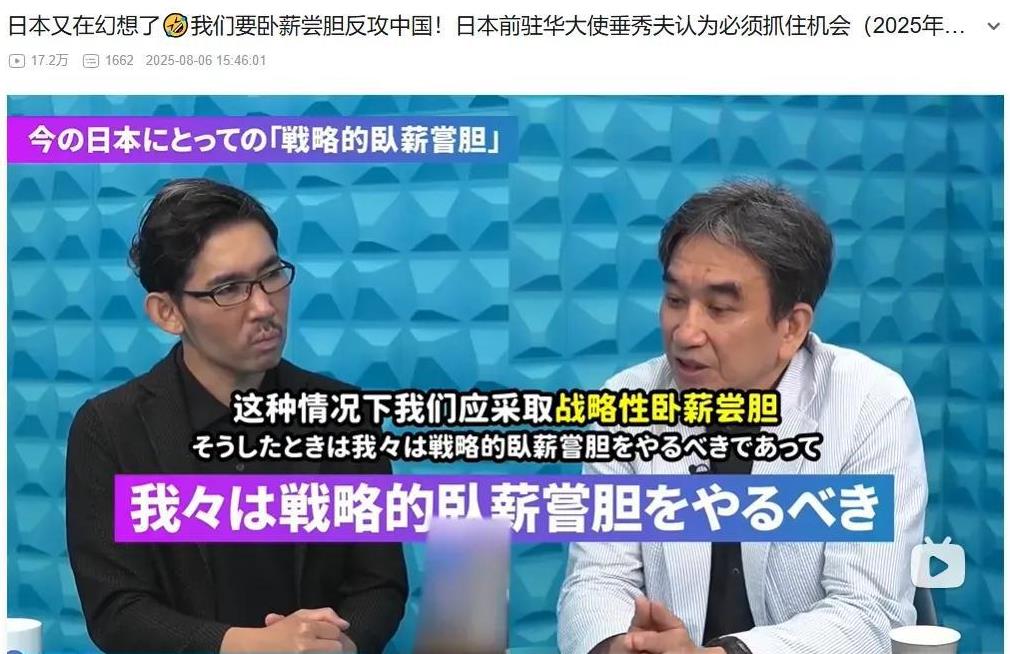 狼子野心!日本还有亡我之心,值得高度警惕! 8月5日,日本前驻华大使垂秀夫参加政论节目,他表示,目前是中国实力强大的时候,日本应该不招惹中国,要卧薪尝胆,等到中国衰落的时候,再寻找机会。他还举例北方四岛,苏联时期,日本不敢吭声,现在却跃跃欲试。 日本欺弱怕强,你强大,它就敬畏你,还把你当作主人。越把它打残,它就越臣服你。唐朝时期,白江口战役,唐朝把日本打败,日本什么都向唐朝学习。明朝时期,明朝通过万历战争和抗倭战争,又把日本打败,日本300年不敢来闹事。二战时,美国向日本扔了两颗核岛,日本彻底向美国臣服,把美国当作主人,自己当哈巴狗,安倍向鲁比奥低头哈腰就是经典例子。