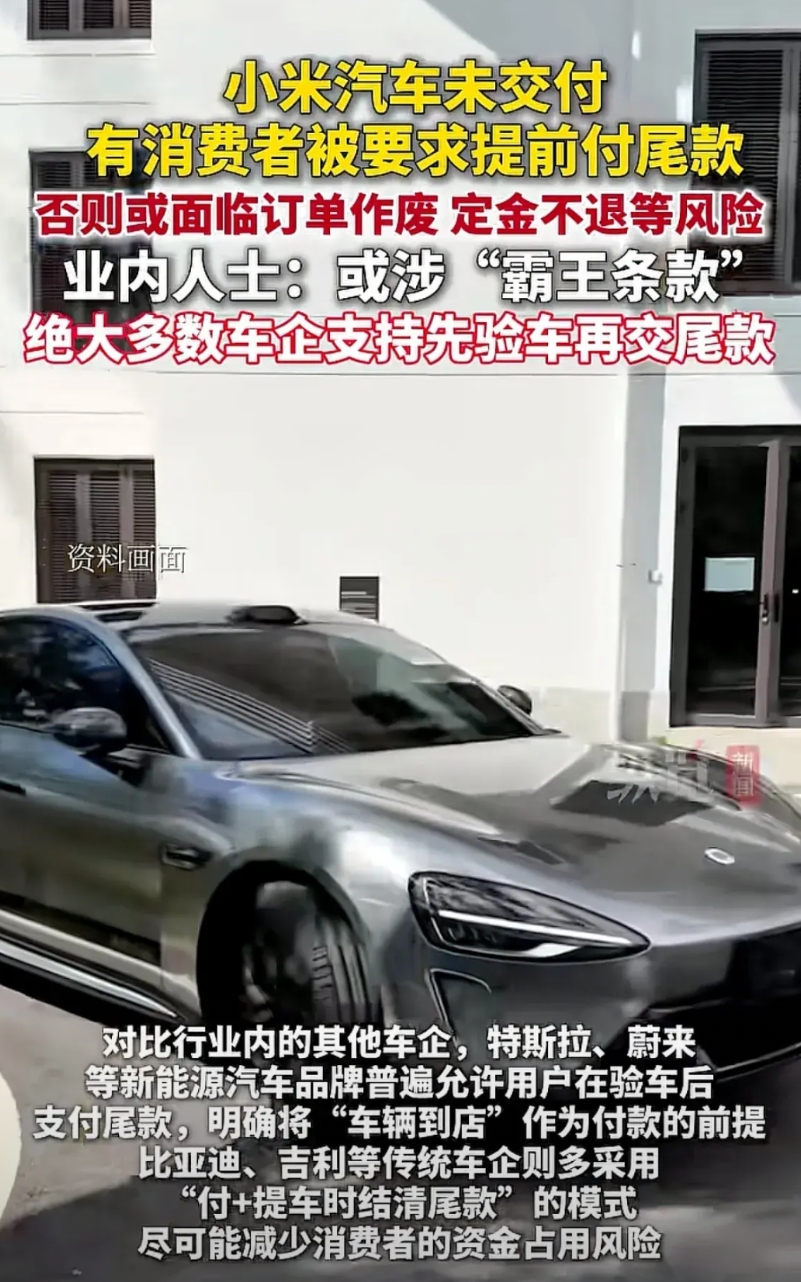 小米汽车未交付前就要求付尾款,应该是为了防黄牛的,希望大家能理解。并不是有些大V