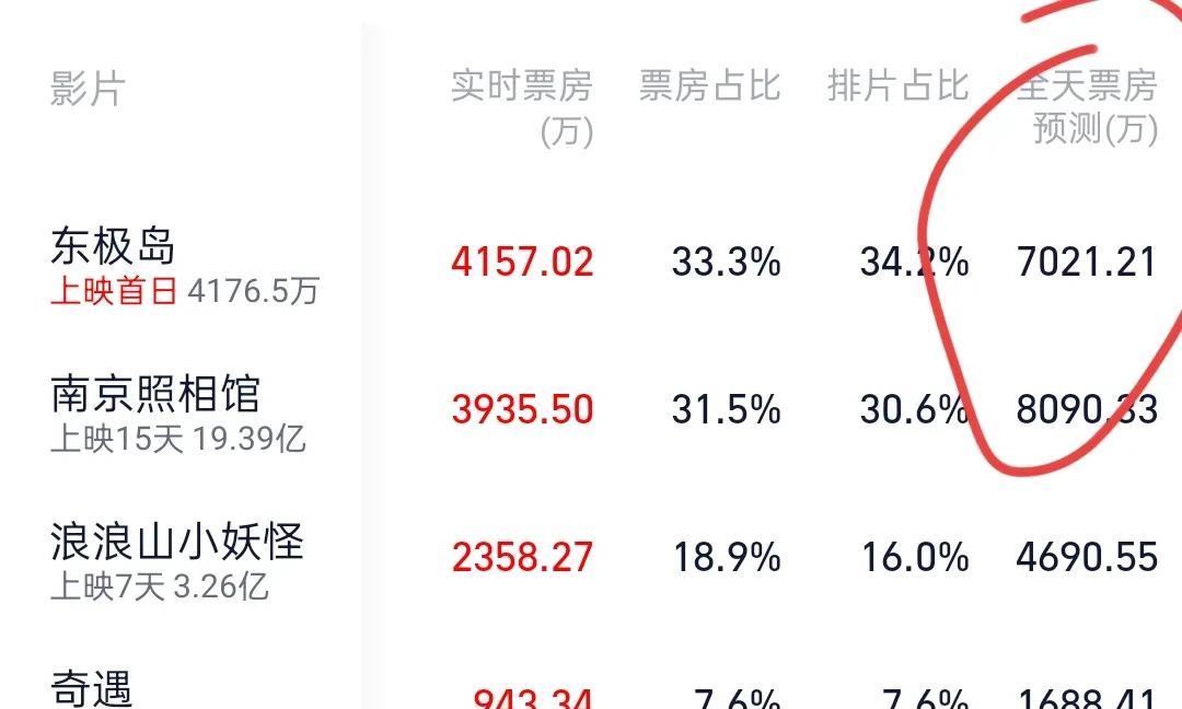 朱一龙吴磊主演的《东极岛》上映首日,排片虽然比《南京照相馆》高,但单日票房似乎无法超越。 同时,总票房预测为11.94亿,如果最终真有这个数,那它就会是暑期档票房第二名,管虎大概率也不会亏本了。 从制作花絮看,这片子投资确实挺大,基本的花销应该在后期制作上,国内外团队共同合作,大部分戏份在水上完成,挑战难度可想而知,经费也在燃烧着。 《南京照相馆》激起了民族爱国情绪,《东极岛》或许能够把这种情绪推向更高处。主角虽然是虚构的,但历史是真实存在过的,而且,《东极岛》中后期的反抗,或许会让观众从压抑中解脱出来,特别解气。 从口碑反馈来看,有点两极分化,甚至有观众怀疑管虎故意贬低渔民,而且,电影里虚构的东西太多,导致和现实出现偏差,变成了抗日神剧,那种大义和大爱的朴素精神似乎淡化了。