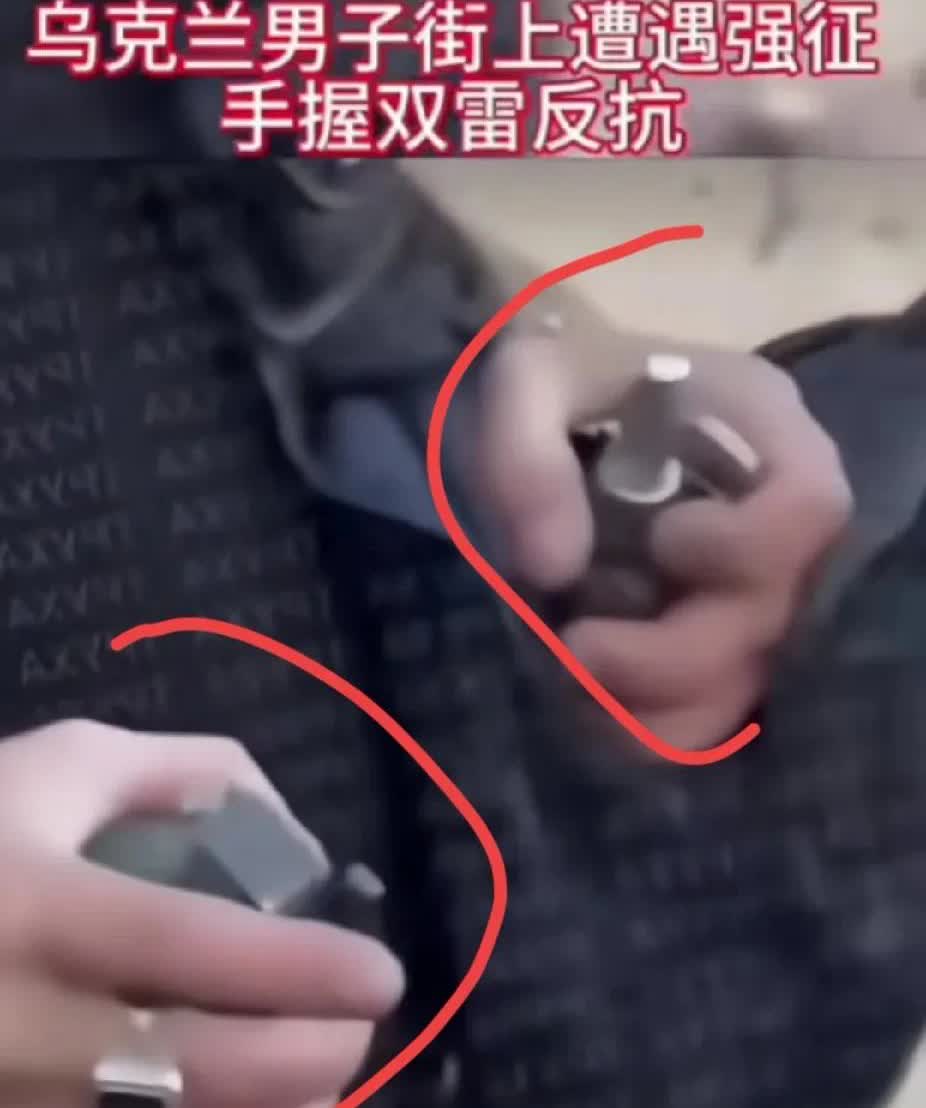 可怜的乌克兰人民!为了抗拒强行征兵,乌克兰一男子手握两个手雷! 从画面上看,这个拒绝被强征上战场的男子,站在一辆自行车旁边,手里握着两个手雷,这场面让人想到,他可能正在大路上骑车时,被拦住要他入伍。 他从身上掏出这两个手雷,于是征兵人员退到安全地带,就这样对峙。 这暗示的,乌克兰未来的结局不是很妙,一方面腐败盛行,一方面又要征平常百姓上前线,看来乌当局集体下台,不过是时间问题。