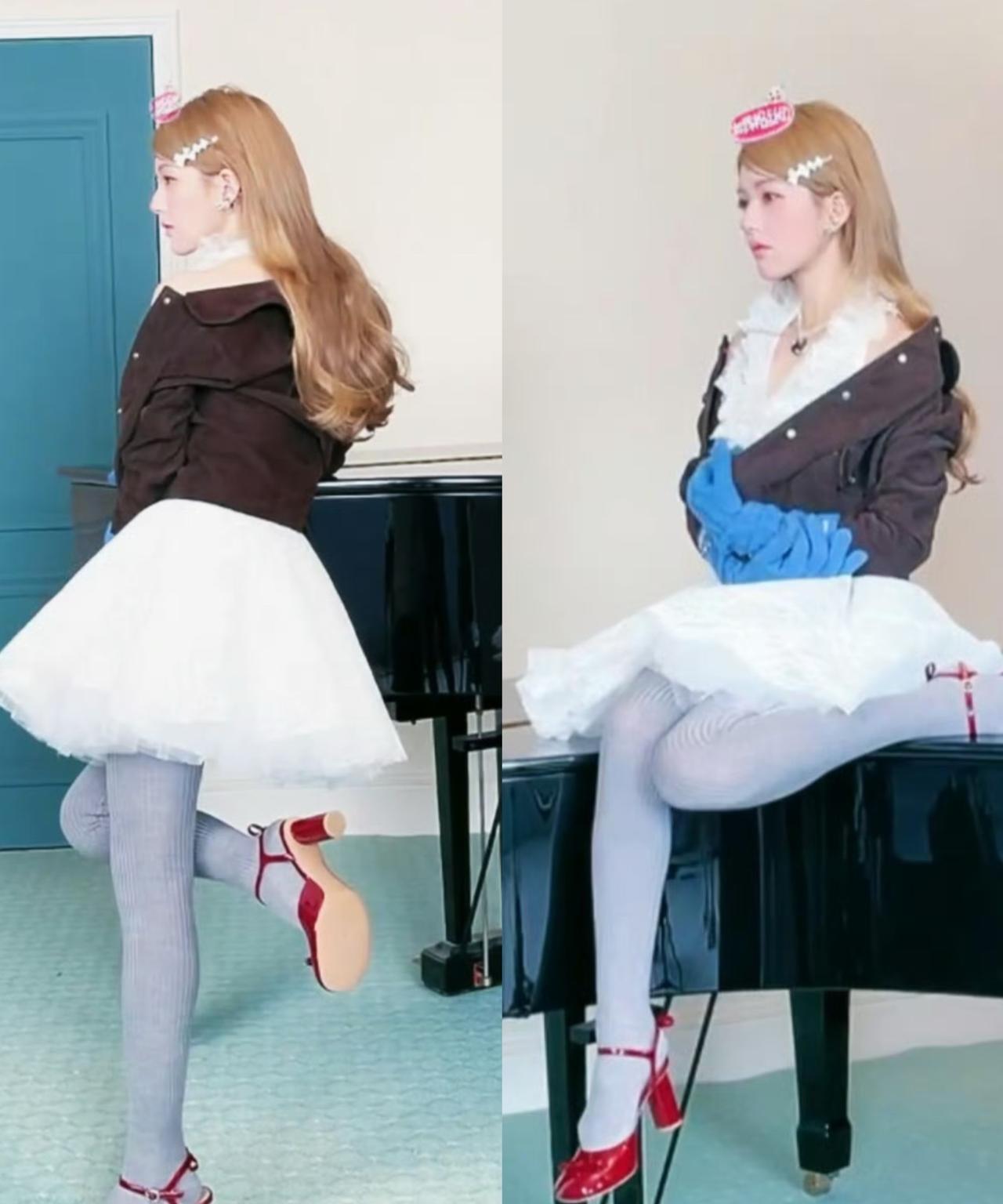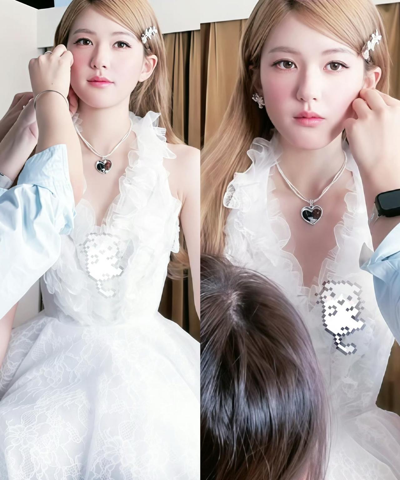 赵露思拍摄直播,变成了童话里的公主。赵露思拍摄也直播,穿着粉粉的裙子和白色蕾丝裙