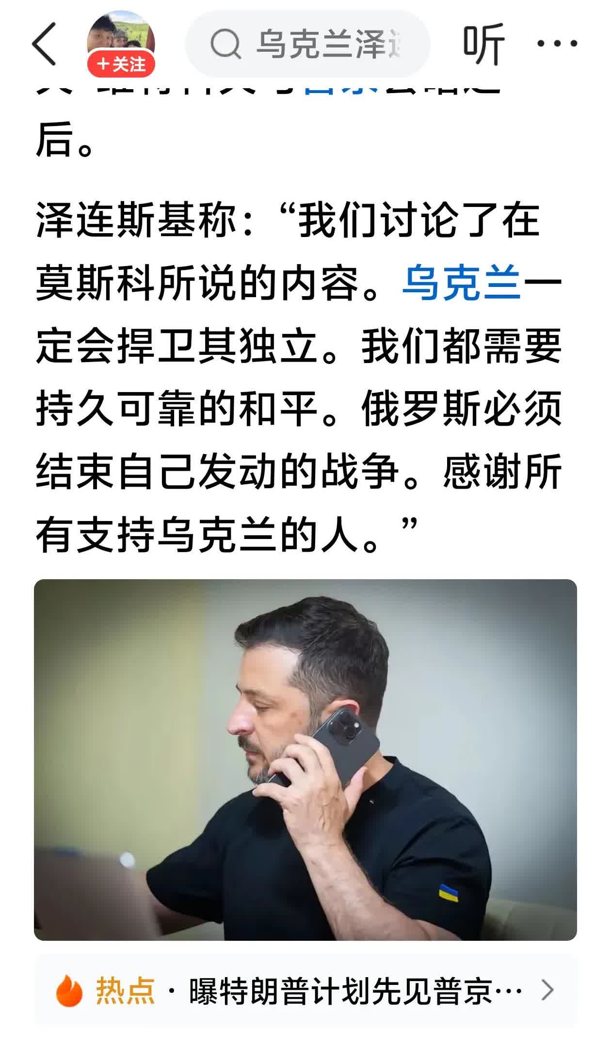 乌克兰总统泽林斯基金句连连: 我愿以自己的辞职换取乌克兰加入北约。(泽林斯基的个人价值没有这么值钱) 普京比我年龄更大,他马上就会死去。我比他活得更久,请大家支持我。(个人年龄与政治生命是两个概念) 没有人比乌克兰人更渴望和平。(要和平的是他,希望鱼死网破的也是他) 我们需要得到可靠的安全保障。(本国安全寄托在别国身上) 我们希望尽快实现停火,同时需要生产更多的无人机,也希望国际社会对俄罗斯给予新的制裁。(既要别人停火,又在作打的部署)