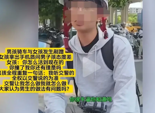现在的女孩真是可怕!近日某地发生一起骑车刮蹭事件,本来很普通也报了警,等警察来处理就好,可女生全程录视频并且咄咄逼人让男生承认是他的责任,并试图用言语激怒男生,企图让男生陷入自证清白的境地。    但男生很冷静,全程一直以:我听交警的,交警来了怎么定责我都接受为回应,不卑不亢的应对。女生看没达到目的竟上升到了人身攻击:骂男生你活到现在简直是奇迹、 你真牛逼!男生仍然没有情绪化,还是说,你说什么都没关系,我听交警的!    见目的没达到,女生说话的音量也小了很多。不得不佩服这个男生的冷静和聪明,这要是碰上一个脾气稍微不太好的或者像肖同学那样的,这个女生的目的肯定就得逞了!希望所有的男人都像这个男孩学习!