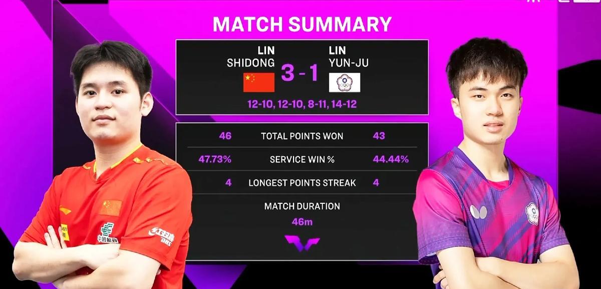 29%的人押他输,他却把6连胜续成7连胜 林诗栋用46分钟把质疑打成静音 横滨冠军赛首日,国乒女单四朵金花齐开,男单却连折薛飞、陈垣宇。第二天,陈幸同、向鹏稳收16强门票,但真正刷屏的是林诗栋对林昀儒的第七次碰面。 前六回,小石头全胜。这回开局依旧硬,第一局11:9先声夺人。第二局林昀儒提速,11:8扳回。第三局两人打到10平,小石头连拿两分,12:10。第四局更窒息,比分一路咬到14:12,小石头才收比赛。四局总得分46:43,差3分就翻车。 现场计时器停在46分钟,比常规局均6分钟多出近一倍。球迷弹幕刷屏:心脏受不了。林昀儒出道十年,赢过马龙、樊振东,却跨不过这块石头。小石头赛后一句“我就信自己”冲上热搜。 有人把这场对决叫修炼之路,其实更像一面镜子。林昀儒照见短板,林诗栋照见极限。竞技体育最动人的不是输赢,是有人逼你每天都得比昨天更好。 下一次见面,谁还敢只给29%?