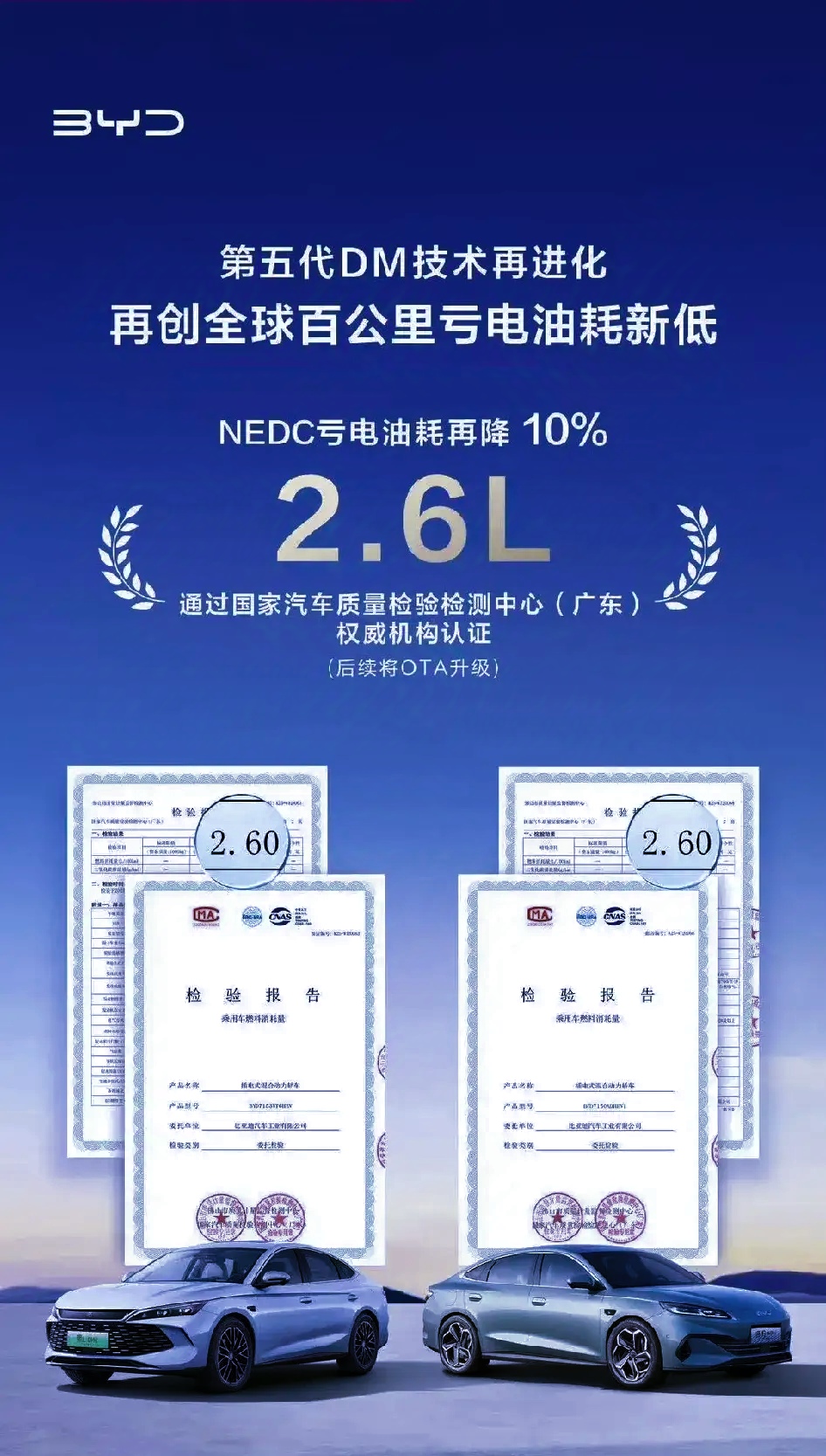 比亚迪:升级后百公里油耗从2.9升降到2.6升。 吉利:不好意思,我实测百公里油耗2.36升。