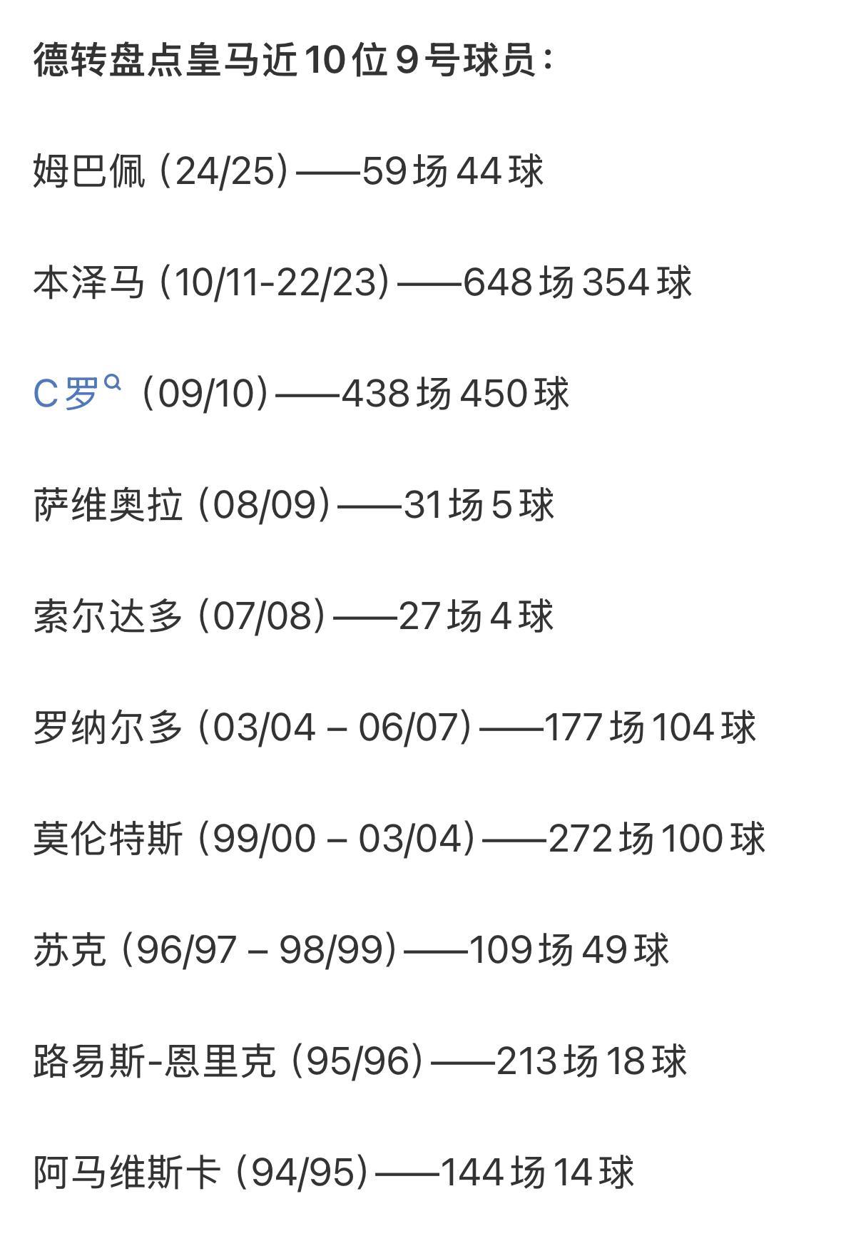 皇马最伟大的9号球员,不是C罗,也不是罗纳尔多,而是法国人本泽马。 另一位法国球星姆巴佩只身披了一个赛季的皇马9号球衣,很显然,他已经没机会取得比肩自己的同胞本泽马的战绩的机会了。 不得不说,这也是一种遗憾了!