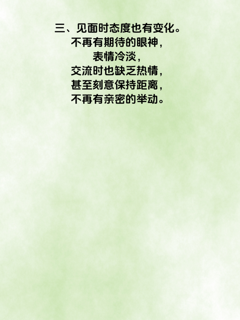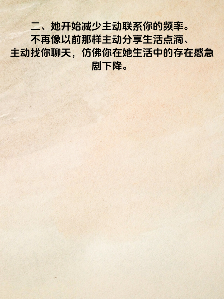 一、在2025年,女生心冷可能会出现一些明显信号。首先,她的回复会变得异常冷淡。以前可能会和你热情地聊个不停,现在却常常只回寥寥数字,甚至很久才回复一次,让你感觉她对交流不再上心。 二、她开始减少主动联系你的频率。不再像以前那样主动分享生活点滴、主动找你聊天,仿佛你在她生活中的存在感急剧下降。 三、见面时态度也有变化。不再有期待的眼神,表情冷淡,交流时也缺乏热情,甚至刻意保持距离,不再有亲密的举动。 四、对于你的邀约,她总是找各种借口推脱。不再像过去那样欣然赴约,而是显得很为难,这说明她内心可能已经对和你相处有些抵触。 五、她对你们共同的回忆也不再提及。那些曾经美好的过往,似乎在她心里已经被尘封,不再愿意回味,这也是心冷的一个迹象。当女生出现这些信号时,男生要格外留意,及时沟通,努力挽回感情,避免让心冷变成真正的冷漠。