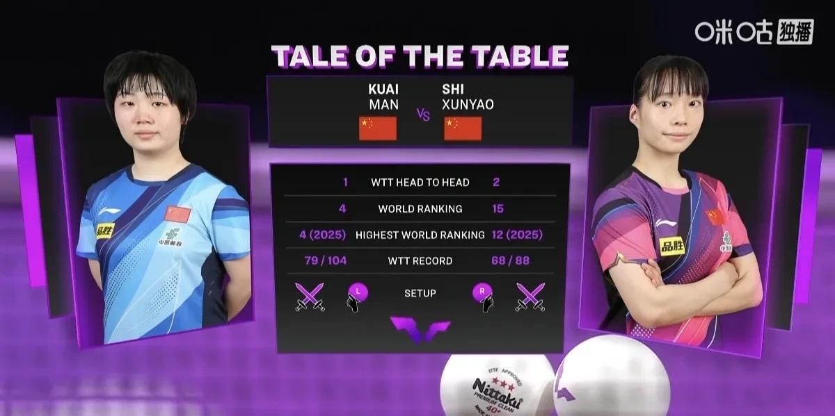 想不到,蒯曼竟然这么快就输了! 今天上午,WTT横滨冠军赛女单1/4决赛上演第二场国乒德比,由蒯曼对阵石洵瑶。 4:0(6:11、11:8、11:8、11:8),石洵瑶完胜蒯曼,强势晋级女单半决赛。 石洵瑶一直都在进攻、进攻,蒯曼很多时候都在防守、防守。 石洵瑶也太厉害了!