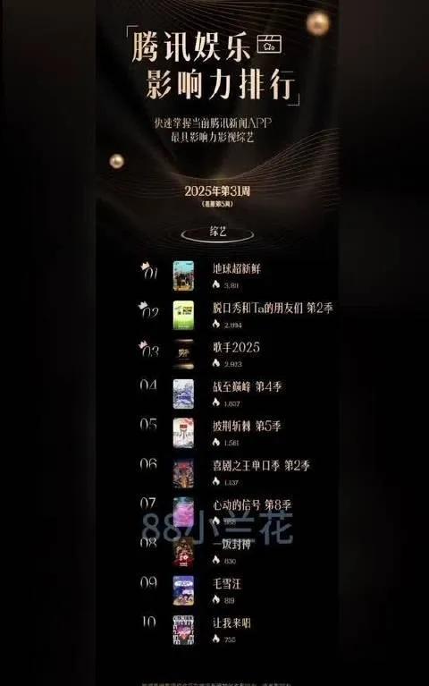 2025腾讯娱乐影响力周榜出炉! 31周影视综TOP榜单揭晓:《扫毒风暴》《南京