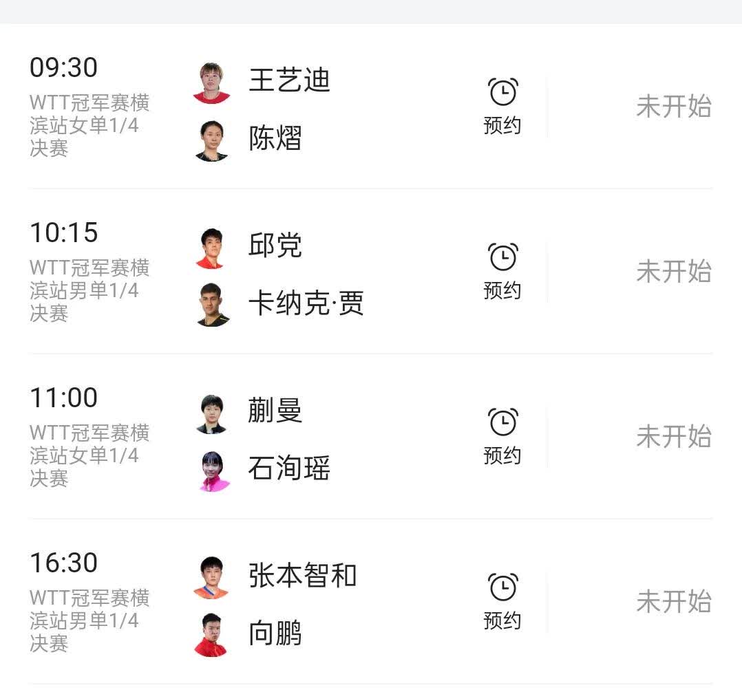 WTT日本横滨冠军赛8月10日赛程 [心]9:30 王艺迪VS 陈熠 [心]11:00蒯曼VS石洵瑶 [心]16:30向鹏VS张本智和 [心]17:15孙颖莎VS大藤沙月 国乒两场内战,敬请期待!