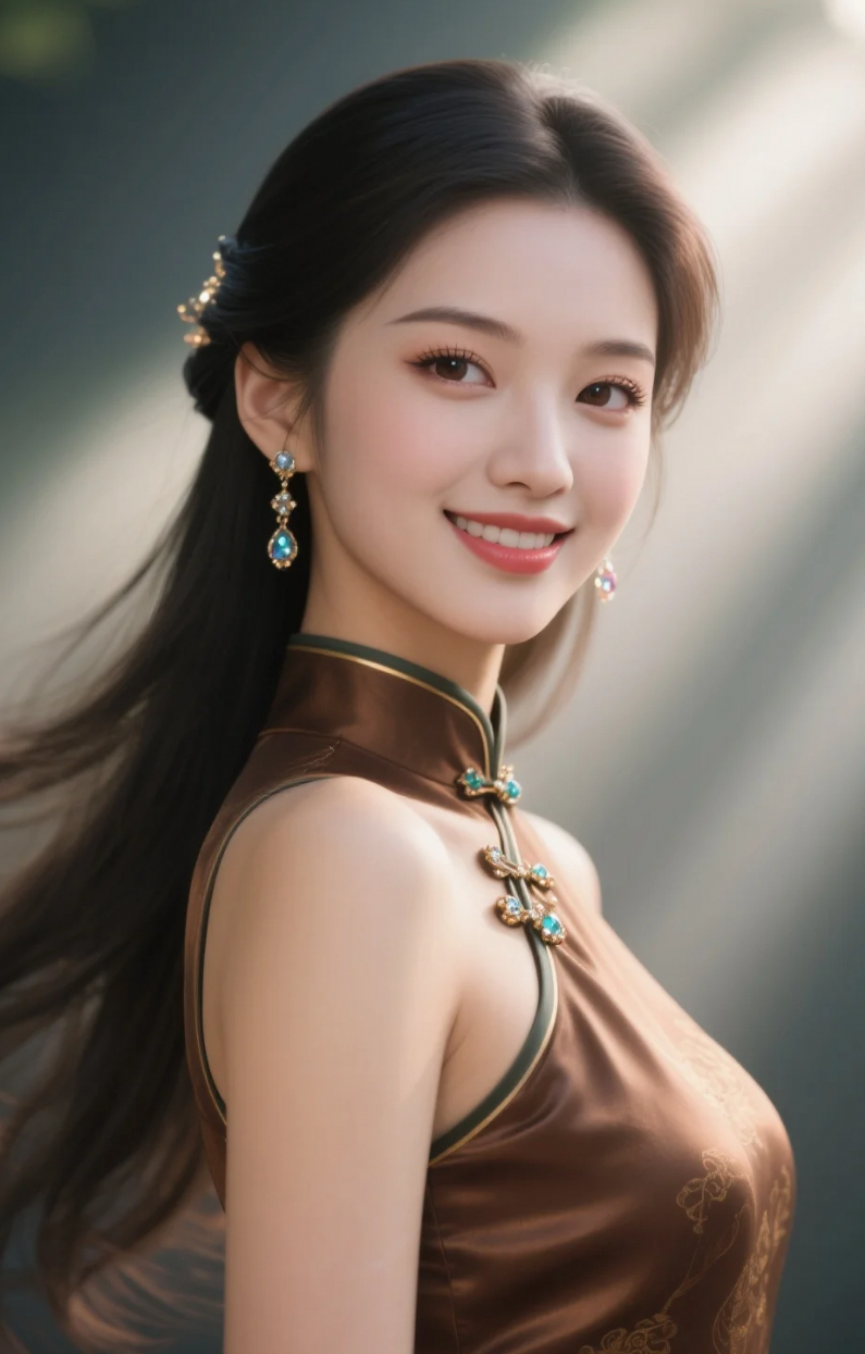 谁说旗袍只能端庄?她一笑,风情万种全在肩头滑落的丝缎里