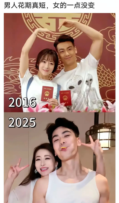 说反了吧,男的反而更显年轻了,女的五官一看就是老黄瓜了