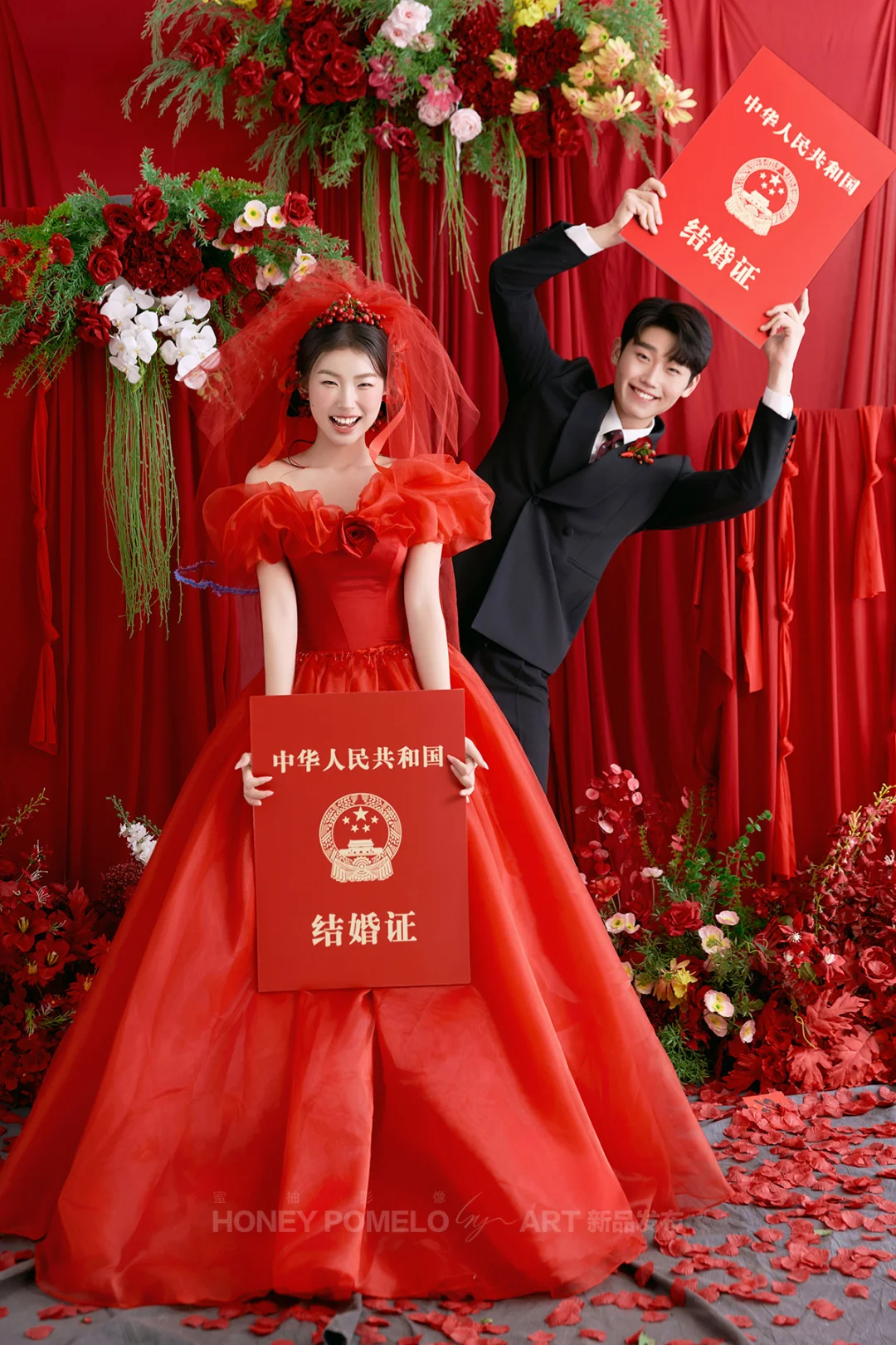 一眼沦陷💞这组轻复古红底婚纱照被夸爆啦~