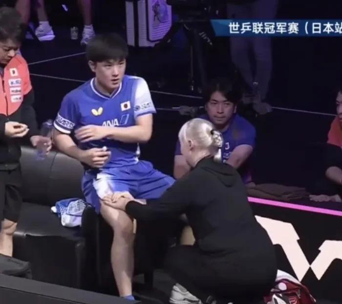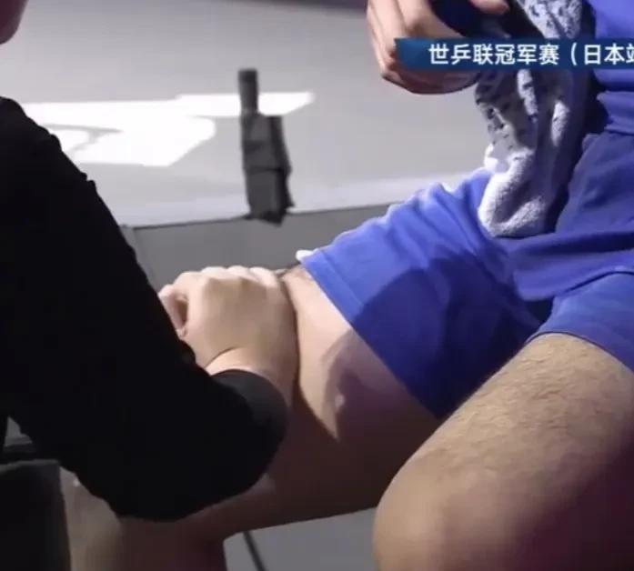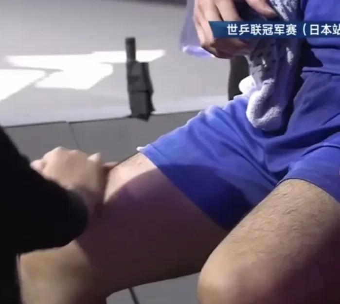 看清楚了,和裁判说的是左腿,治的却是右腿! 这个张本智和在王楚钦追分的时候申请医疗暂停。跟主裁判说的是左腿,可是治疗的却是右腿。 这也太离谱了吧! 想赢球都想疯了!