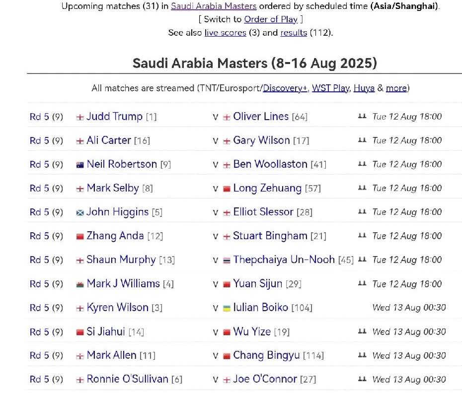 沙特大师赛第四轮战报,中国军团4人晋级,今天凌晨,吴宜泽、常冰玉晋级32强,周跃
