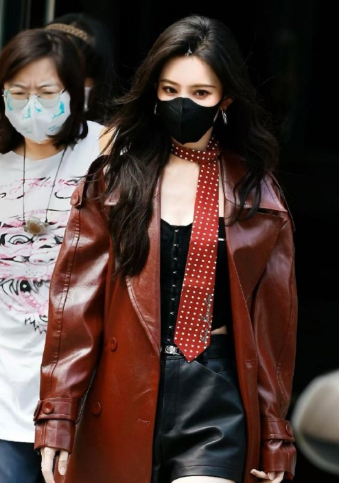 刷到孟子义hi6的图,红皮衣配长靴太搭,卷发柔和了硬朗,丝带点缀得妙,不管静态动态都好看,透着股自在的时髦劲儿,爱了。
