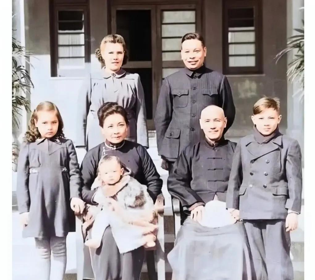 上世纪四十年代,蒋经国一家五口与父亲蒋中正、姆妈宋美龄在南京的合影老照片