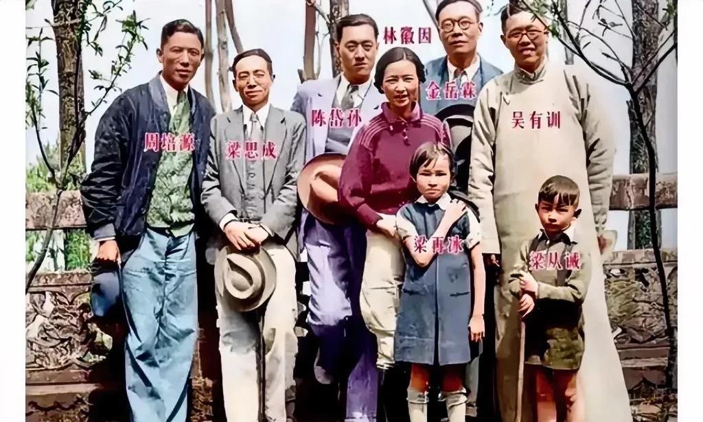 这是林徽因一家四口与周培源、陈岱孙、金岳霖、吴有训在昆明的一张珍贵合影,拍摄于上