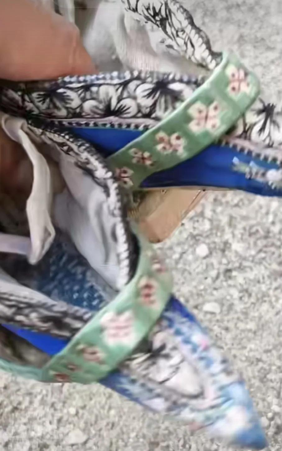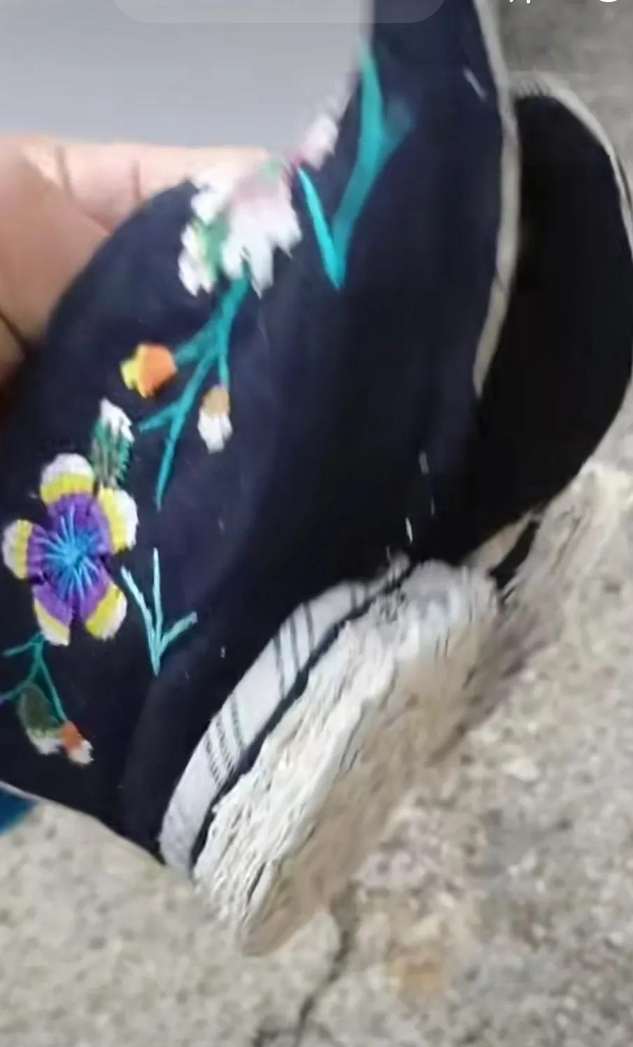 看到这双三寸金莲的鞋子,就想起小的时候,我们二楼八十多岁的邢太太,就是裹着小脚穿