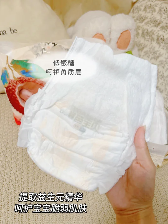 我还发现它添加了益生元成分,能呵护宝宝屁屁的微生态,减少红屁屁的发生。有次宝宝拉肚子,我还担心会红屁屁,结果用了荔荔甜睡裤,啥事都没有,真的太让人安心了👏