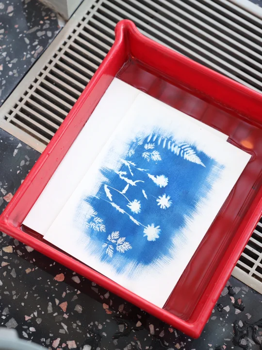 在专业指导下,参与者们亲身体验了蓝晒印相工艺制作的全过程。从调配感光溶液、涂布纸张,到摆放构图、紫外线曝光,再到最后的清水显影和氧化调整,每个人都全神贯注地投入到这场"以光为笔"的艺术创作中。