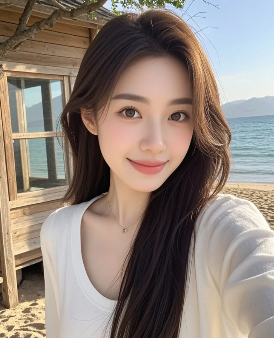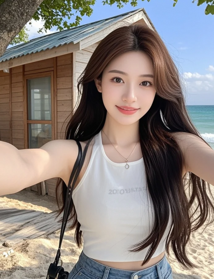 白皙肌肤映着海光,这一刻我最耀眼。