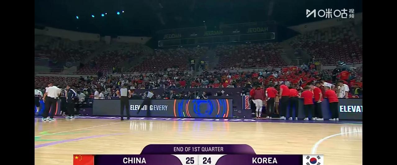 中国男篮首节25:24领先韩国队。 首节比赛中国队很好限制住韩国队三分球投射,逼迫其转为强打篮下,面对2米21的余嘉豪,韩国队很难奏效。 中国队首节比赛两分球10中6,命中率60%,三分球4中2,命中率50%。韩国两分球14中9,64%,三分球6中2,命中率33%。