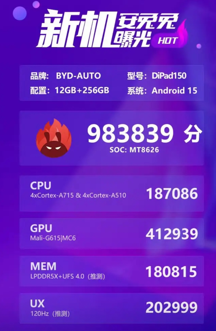 不过从安兔兔曝光的跑分情况来看,这块平板性能表现一般,预计主要还是运用于汽车的控制联动,娱乐性没有那么的优秀。 官宣的渠道也只是方程豹车型进行搭载,看样子暂时并不会大规模的生产,只是试水行为而已。
