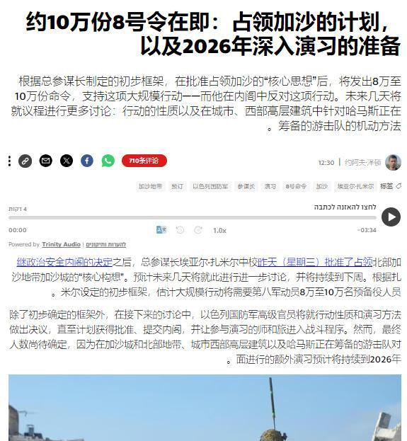 根据以色列国防部总参谋长扎米尔的构想,以军评估认为现有的几十万兵力用于对抗加沙市