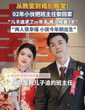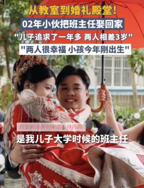 胆子真大!广西南宁,一00后男生上学,竟然对班主任一见钟情,当晚就跟班主任表白,万万没想到,他被拒之后也不放弃,对班主任展开猛烈追求,经过1年不懈努力,班主任终于答应了,并且,男生妈妈也非常满意这个儿媳,2人结婚后,没多久就生了孩子,男生妈妈42岁就当奶奶了,网友:上一个这么干的还是杨过! “我是你老师,咱俩之间不可能。”林老师(化名)看着眼前对她表白的陈昊(化名)说道。看着拒绝自己的林老师,陈昊并没有因此而退缩,反而越挫越勇,最后竟真的让他抱得了美人归。 陈昊是2002年出生的00后,2023年刚入学就注意到了比自己大3岁的班主任林老师。林老师负责班级行政工作,不直接授课,但温柔干练的形象让陈昊一见倾心。 表白被拒后,陈昊没有放弃,而是选择用行动证明自己的真心。每天准时的早安晚安,下雨天悄悄放在办公室门口的伞,林老师加班时送来的热奶茶,这些细节逐渐融化了林老师的防备。 转折发生在2024年夏天。陈昊毕业后,第一时间找到林老师:“现在我不是你的学生了,可以给我一个机会吗?”这一次,林老师没有立即拒绝。经过慎重考虑,她终于点头同意交往。 两人的恋情很快传开,引发不小争议。有人质疑师生恋的合理性,校方很快作出回应:两人确立关系时已不存在师生身份,且林老师从未担任陈昊的专业课教师,不存在权力不对等问题。 更令人意外的是陈昊母亲的态度。42岁的林女士得知儿子恋情后,不仅没有反对,反而对这位儿媳十分满意:“我就喜欢这种踏实稳重的姑娘。”2025年初,两人举办婚礼时,林女士一身红色旗袍亮相,年轻靓丽的形象引发网友热议,“42岁婆婆”的话题一度冲上热搜。 婚后不久,林老师怀孕的消息传来。陈昊在社交平台晒出B超照片,配文:“我要当爸爸了,也要让妈妈当最年轻的奶奶。”评论区瞬间沸腾,有网友调侃:“别人大学四年收获文凭,你直接收获老婆孩子,人生赢家啊。”也有人感叹:“只要真心相爱,年龄身份都不是问题。” 面对外界的好奇,陈昊坦言:“我从没把她当老师来喜欢,只是恰好喜欢的人是老师。”林老师则笑着补充:“他追我的时候,我都怀疑是不是受了什么刺激。但现在看来,这个刺激还不错。” 爱情没有固定模板,但责任和尊重必不可少。陈昊和林老师的故事之所以能修成正果,正是因为两人在合适的时间,用成熟的态度经营感情。师生恋并非不可行,但必须建立在平等、自愿的基础上。与其纠结身份,不如问问自己,是否真的做好了携手一生的准备? 愿每一份真心都不被辜负,愿每一段爱情都能得到祝福。 信息来源: 封面新闻|2025.2.25《第204集:从教室到婚礼殿堂!02年小伙把大学班主任娶回家,小伙妈妈:两人很幸福》 文|何夕 编辑|史叔