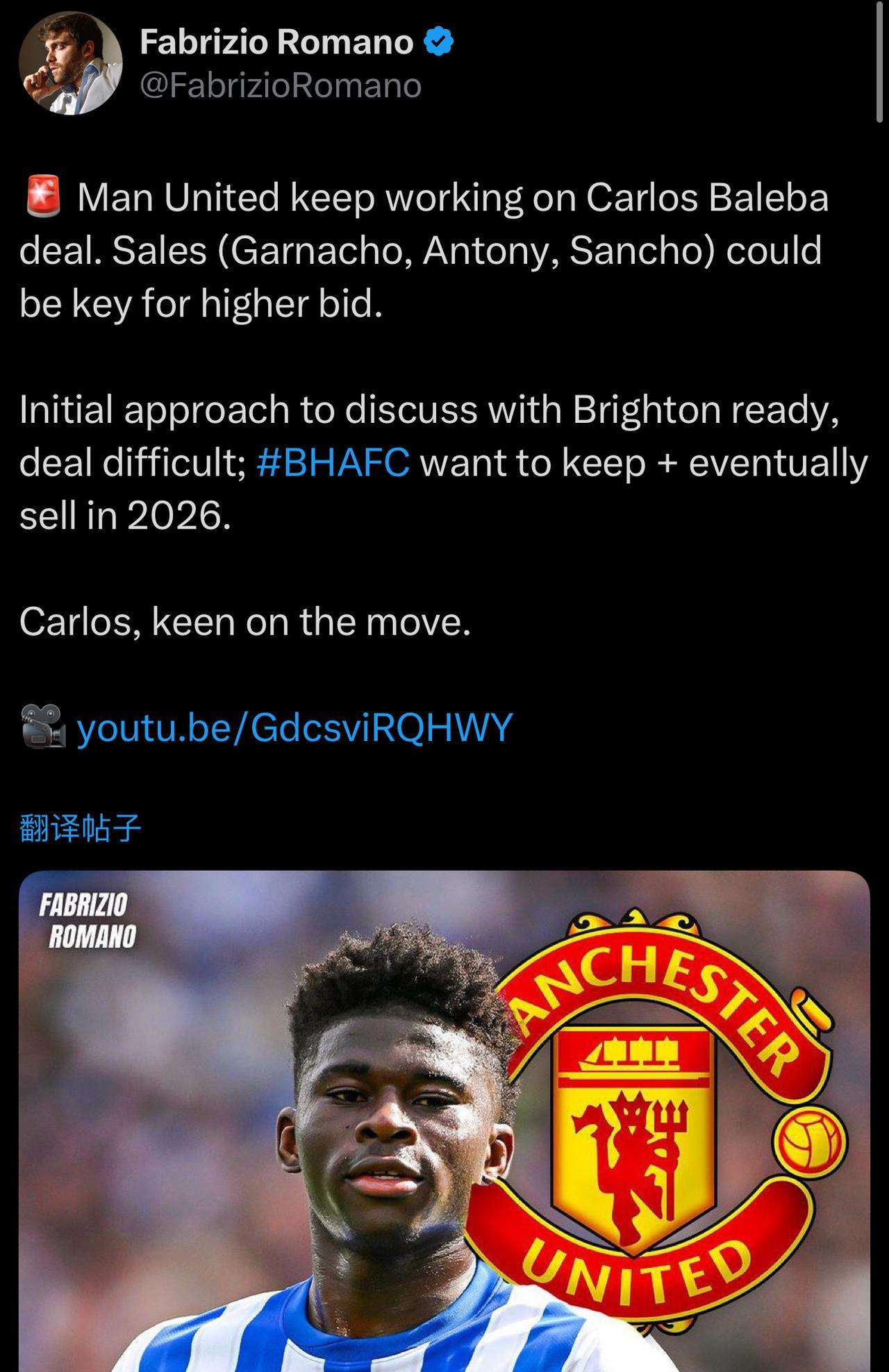 目前从可信的渠道消息看,曼联今夏买下巴莱巴,基本没有可能(除非价格特别高) 大家都认为,最后尝试购买巴莱巴的目的: 1,为26年夏天正式购买预热 2,和球员建立良好关系 3,显示球队的雄心