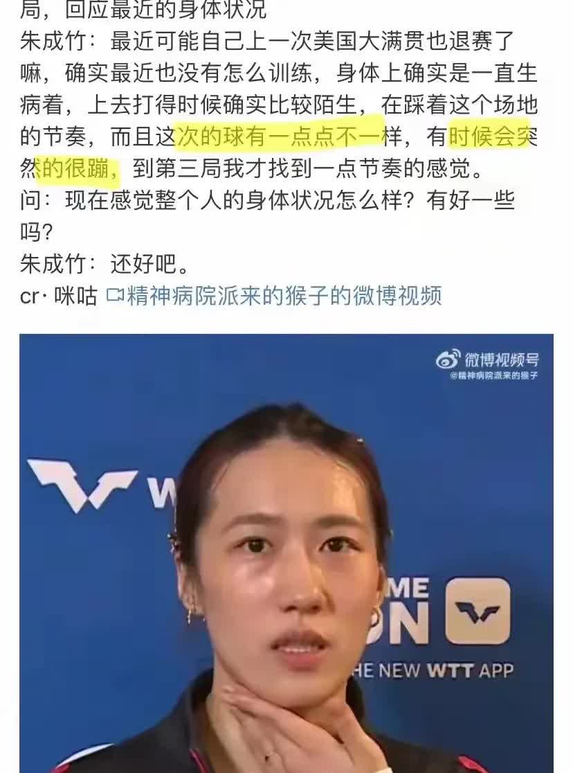 国乒到达瑞典,首轮爆冷淘汰的朱成竹说,一个坏消息等着孙颖莎,王曼昱她们! 今天凌晨国乒平安落地, 孙颖莎,王曼昱,石洵瑶感觉累的像蔫吧的茄子了! 不过她们不打资格赛, 可以好好休息两天! 昨天首轮被爆冷淘汰的朱成竹说: 这次球不一样, 有时候会突然很蹦! 从最近几次比赛来看, 频繁换球桌和球, 对孙颖莎和王曼昱这种高水平运动员影响更大。 想不明白, wtt为什么总这么搞?