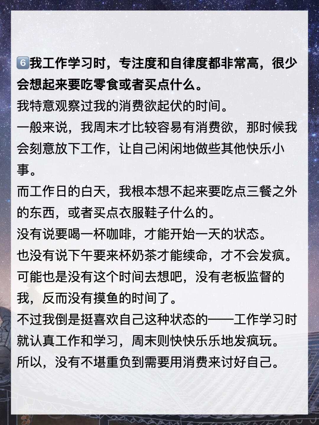 6️⃣我工作学习时,专注度和自律度都非常高,很少会想起来要吃零食或者买点什么。