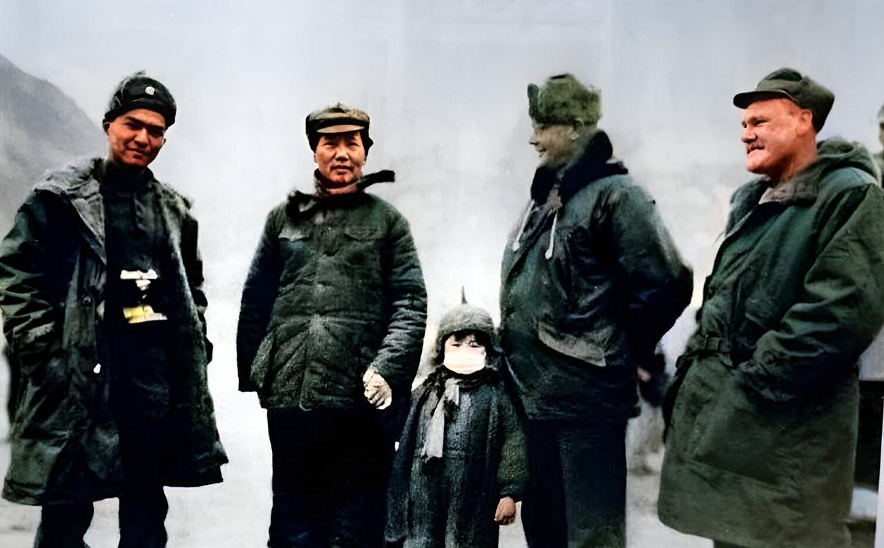 这是1946年毛主席与前往延安的美军观察组成员在一起。毛主席旁边那个戴着口罩的小女孩就是可爱的李讷。李讷一直陪伴在父亲毛主席身边。毛主席也对这个小女儿极为宠爱。当年,毛主席到南泥湾视察王震将军的部队后又在返程中来到炮兵团。在接待宴上,炮兵团特意为毛主席准备了烧鸡。毛主席并没有客气。可是,当毛主席吃到一半时突然想到了女儿小李讷。 于是,他说自己要将另一半烧鸡带回去给女儿尝尝。这只烧鸡看似微不足道。但毛主席平常也很难吃上烧鸡。李讷也好久没有沾荤腥。因此,当毛主席视察部队时,口袋里鼓鼓的。因为,他的口袋里装着那半只烧鸡。当然,也有说毛主席口袋里的半只烧鸡是炮兵团教导营营长宋承志装的。
