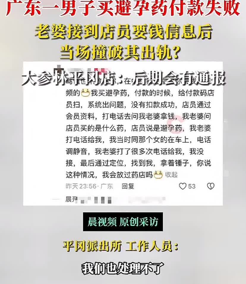 广东阳江,男子药店买避孕套付款失败,老婆接到店员要钱信息后,当场撞破男子出轨。男子:现在两个家庭破裂,你怎么挽回这个局面? 晚上九点多,男子到药店买避孕套,付款时店员问他有没有会员号?男子随即报了老婆的会员号给店员。在付款时男子出示自己的付款码界面给店员扫码然后离开药店。 由于系统问题,店员在扫码后并未收到男子的付款,而男子已经离开。店员便通过会员信息找到男子的老婆并向她说明来意。 男子的老婆问店员:我老公在店里买了什么东西啊?店员如实回答。男子的老婆听后怀疑男子有情况,便给男子打电话想问个清楚。 结果,男子从药店出来后约上第三者坐上自己的车,为了不被人打扰,他还把自己的手机调成静音。 导致男子老婆给他打了很多电话,他都未曾接听。男子的老婆看老公不仅背着自己买避孕套,还不接电话,她的心里断定男子有猫腻。 男子的老婆后来通过定位找到了男子所在之处,她提着一个锤子去找男子,刚好看到男子和第三者在车上亲热。 眼看被抓了现场,男子怎么辩解都没用。男子的老婆向他提出离婚,随即第三者那边也知晓她的破事,也在闹离婚。 本来这件事情是男子的问题,可他觉得要是药店的店员不找他老婆要钱,这件事情就不会被老婆撞见,自己出轨的事老婆也不会知道。 如今家里闹得鸡飞狗跳,好好的家庭就要散了。男子觉得是药店的店员有问题,他决定起诉店员,让他负责。 这男的出轨本身就是人品道德有问题,即使没有店员,他出轨的事迟早也会被老婆知道,因为纸包不住火。