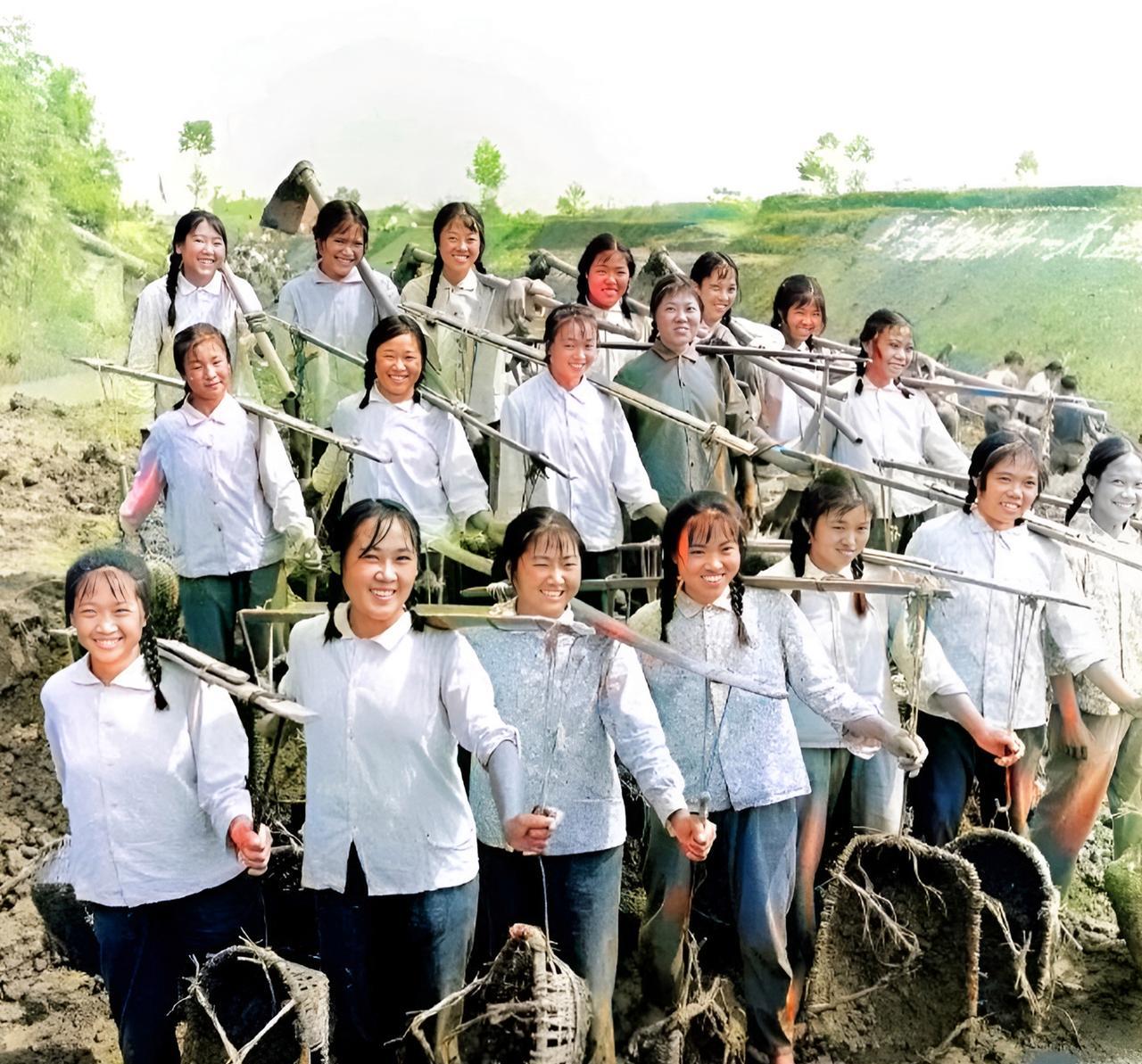 这是六十年代山西大寨“铁姑娘队”们。每位姑娘扎着辫子,面露微笑。当年,劳动人民最光荣的观念深入人心。这些姑娘热爱劳动。她们也坚信凭着自己的双手双脚能改变大寨的面貌。她们精神饱满,干劲十足。这些姑娘平均年龄只有二十岁左右。山西大寨是全国农村的榜样。这些铁姑娘也是全国姑娘的榜样。 铁姑娘队的队长名叫郭凤莲。在她的带领下,这些姑娘没日没夜的劳动。她们凭借钢铁一般的意志修建梯田、开凿水渠。功夫不负有心人,女人能顶半边天。一项项艰难的任务被她们一一完成。最终,这片土地由曾经贫瘠不堪的荒地变成了种田打粮的肥沃之地。你可能不知道这群曾经战天斗地的姑娘,但你不可能忘记人人曾向往的山西大寨。