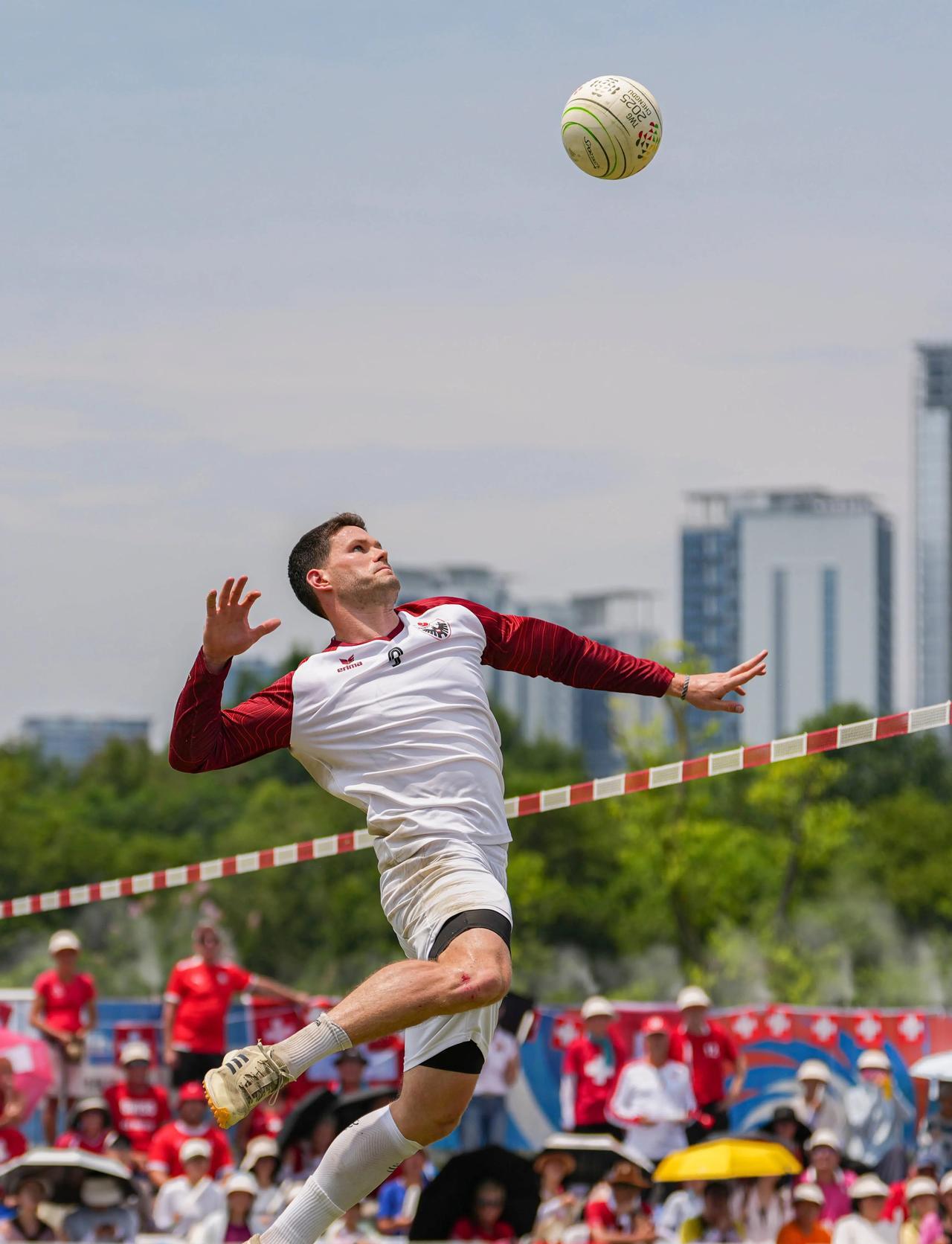 看成都世运会就是看稀罕、看热闹,一下子就看上了浮士德球,新鲜刺激,老外真会玩! 浮士德球是德语直译,英语叫拳头球,但叫草地排球更合适,浮士德球=网球+排球! 场地大概比两个排球场大一点,但网高要比排球低不少。 排球可以用手掌击球,浮士德球只能用单手握拳击球;排球球不可以落地,浮士德球像网球一样可以允许球着地弹跳一次;浮士德球规则简单、门槛较低,对身体条件的要求比排球和网球要小很多。 中国开展浮士德球最大的障碍是场地问题,因为这项运动要求像温网一样,在草地上举行![流泪][流泪] @牛柄膳杬,分享有价值的感悟