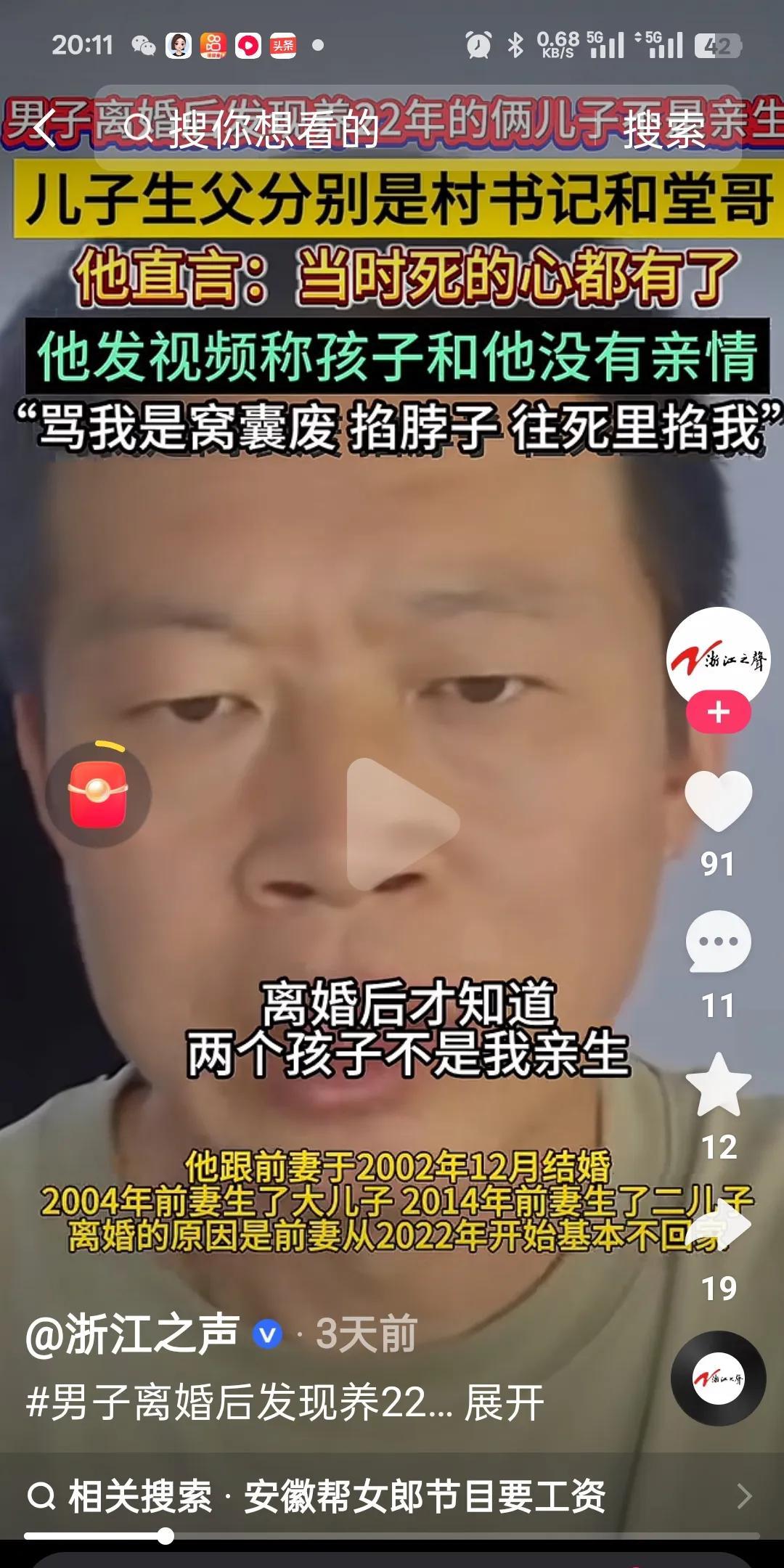 其实国家应该立法,严格约束在婚姻内不种之人,特别是部分恶意出轨隐瞒的女性,不爱了,就敞开放手,不要伤害,试想一下,一个男人疼爱了20多年身边的人,最后发现一直都在戴帽子,最可悲的是疼爱了20多年的孩子也不是亲生的,这是样的伤害,可以说杀人又诛心啊,这样的对自己伴侣恶意精神伤害和欺骗,法律应该严惩不贷才是,要不然不知道还会有多少人受到伤害,婚姻需要受到保护,男人也需要保护的。