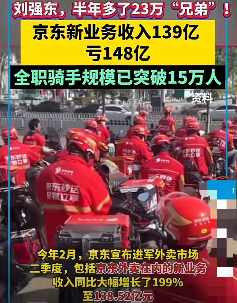 但该板块的营业成本和经营费用,也大幅上涨,经营亏损从去年的7亿元扩大到现在147.8亿元。可是今年京东618外卖订单日单量突跛2500万单,入驻品牌商家达150万家。