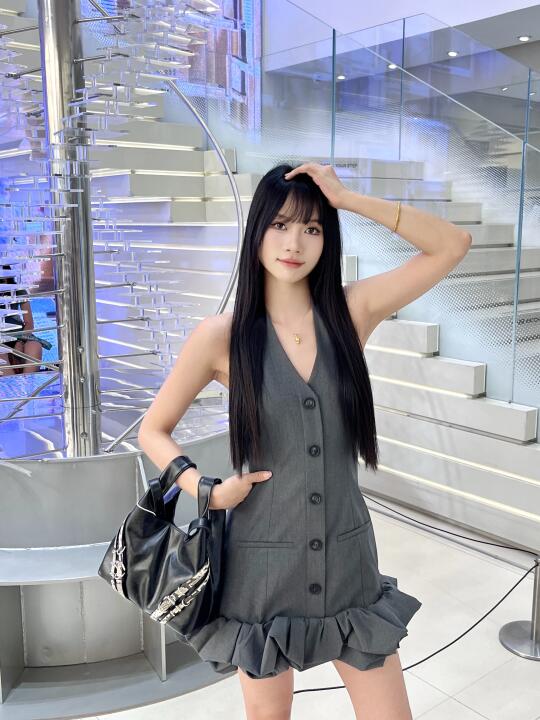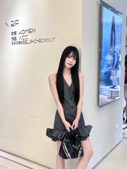 最喜欢灰色挂脖裙这件!一整个miu系穿搭